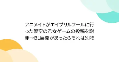 アニメイトがエイプリルフールに行った架空の乙女ゲームの投稿を謝罪→BL展開があったらそれは別物