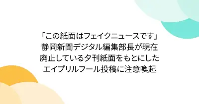 「この紙面はフェイクニュースです」静岡新聞デジタル編集部長が現在廃止している夕刊紙面をもとにしたエイプリルフール投稿に注意喚起