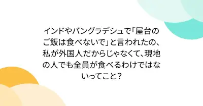 インドやバングラデシュで「屋台のご飯は食べないで」と言われたの、私が外国人だからじゃなくて、現地の人でも全員が食べるわけではないってこと?
