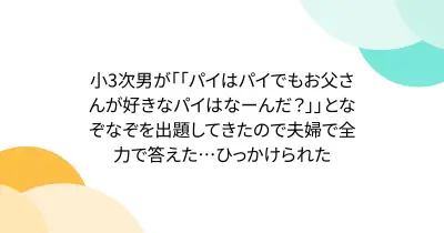小3次男が「「パイはパイでもお父さんが好きなパイはなーんだ?」」となぞなぞを出題してきたので夫婦で全力で答えた…ひっかけられた