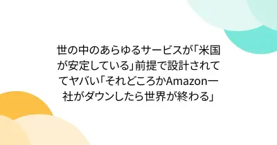 世の中のあらゆるサービスが「米国が安定している」前提で設計されててヤバい「それどころかAmazon一社がダウンしたら世界が終わる」