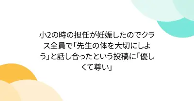 小2の時の担任が妊娠したのでクラス全員で「先生の体を大切にしよう」と話し合ったという投稿に「優しくて尊い」