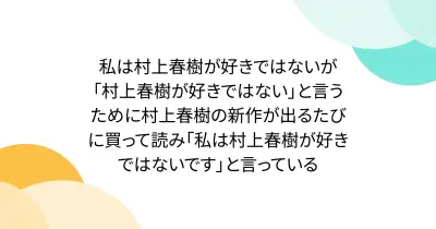 私は村上春樹が好きではないが「村上春樹が好きではない」と言うために村上春樹の新作が出るたびに買って読み「私は村上春樹が好きではないです」と言っている
