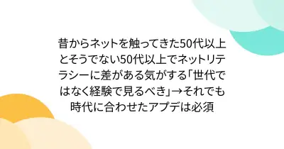 昔からネットを触ってきた50代以上とそうでない50代以上でネットリテラシーに差がある気がする「世代ではなく経験で見るべき」→それでも時代に合わせたアプデは必須