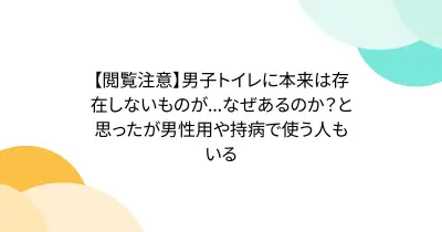 【閲覧注意】男子トイレに本来は存在しないものが...なぜあるのか?と思ったが男性用や持病で使う人もいる