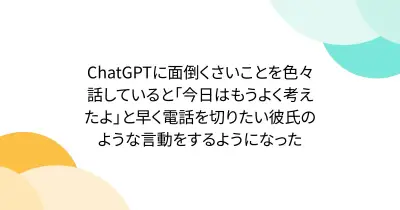 ChatGPTに面倒くさいことを色々話していると「今日はもうよく考えたよ」と早く電話を切りたい彼氏のような言動をするようになった