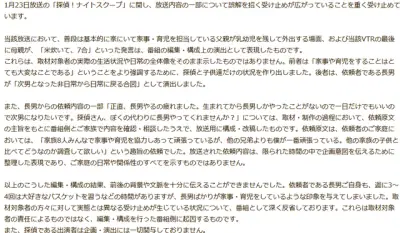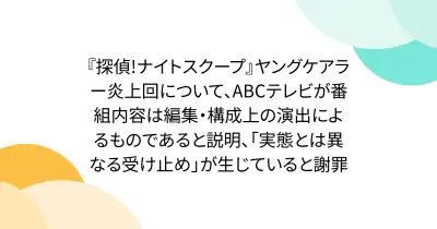 『探偵!ナイトスクープ』ヤングケアラー炎上回について、ABCテレビが番組内容は編集・構成上の演出によるものであると説明、「実態とは異なる受け止め」が生じていると謝罪