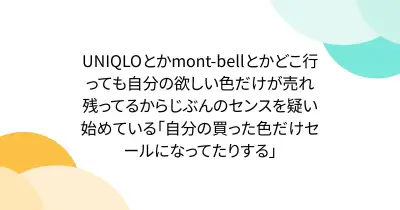 UNIQLOとかmont-bellとかどこ行っても自分の欲しい色だけが売れ残ってるからじぶんのセンスを疑い始めている「自分の買った色だけセールになってたりする」