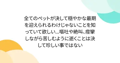 全てのペットが決して穏やかな最期を迎えられるわけじゃないことを知っていて欲しい...嘔吐や絶叫、痙攣しながら苦しむように逝くことは決して珍しい事ではない