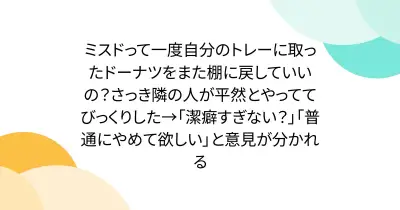 ミスドって一度自分のトレーに取ったドーナツをまた棚に戻していいの?さっき隣の人が平然とやっててびっくりした→「潔癖すぎない?」「普通にやめて欲しい」と意見が分かれる