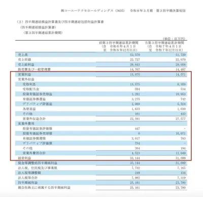 コーエーテクモ、襟川恵子さんお得意の資産運用(2026年3月期第3四半期)は約165億円の儲けで着地
