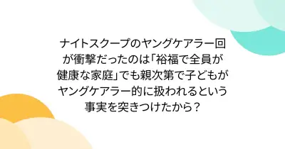 ナイトスクープのヤングケアラー回が衝撃だったのは「裕福で全員が健康な家庭」でも親次第で子どもがヤングケアラー的に扱われるという事実を突きつけたから?