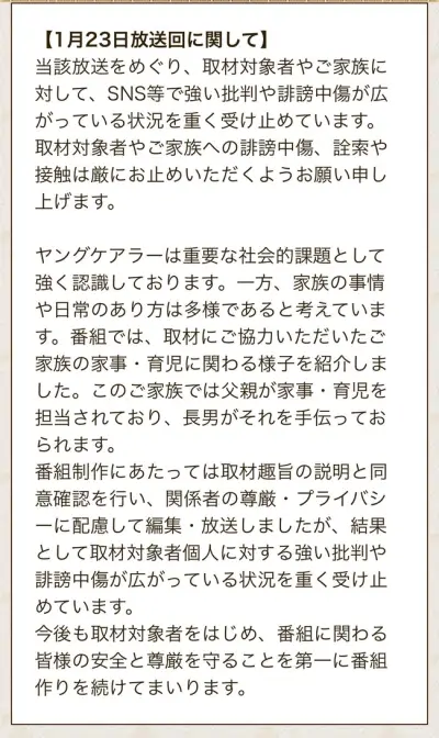 探偵!ナイトスクープ公式「取材対象者への詮索や接触は厳にお止めいただくようお願い申し上げます。」