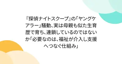 『探偵ナイトスクープ』の「ヤングケアラー」騒動、実は母親も似た生育歴で育ち、連鎖しているのではないか「必要なのは、福祉が介入し支援へつなぐ仕組み」