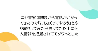 ニセ警察(詐欺)から電話がかかってきたので「おちょくってやろう」とやり取りしてみた→思ってた以上に個人情報を把握されててゾワっとした