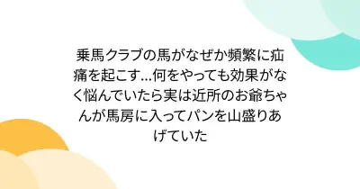 乗馬クラブの馬がなぜか頻繁に疝痛を起こす...何をやっても効果がなく悩んでいたら実は近所のお爺ちゃんが馬房に入ってパンを山盛りあげていた