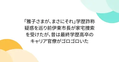「雅子さまが、まさにそれ」学歴詐称疑惑を巡り前伊東市長が家宅捜索を受けたが、昔は最終学歴高卒のキャリア官僚がゴロゴロいた