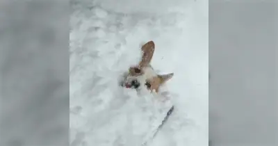 北海道はかなりの大雪でコーギーがスタックしてしまう事態に→しかし本人は満足そう