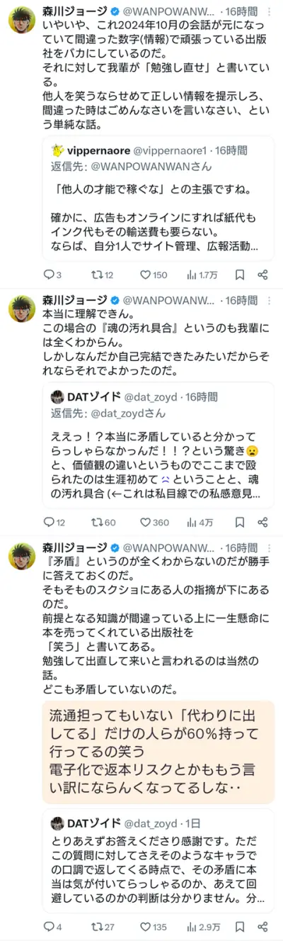 【悲報】はじめの一歩の作者、Xでずっとレスバをしてしまう
