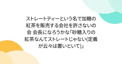 ストレートティーという名で加糖の紅茶を販売する会社を許さないの会 会長になろうかな「砂糖入りの紅茶なんてストレートじゃない(定義が云々は置いといて)」