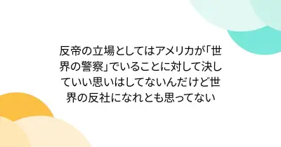 反帝の立場としてはアメリカが「世界の警察」でいることに対して決していい思いはしてないんだけど世界の反社になれとも思ってない