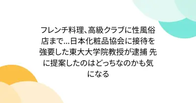 フレンチ料理、高級クラブに性風俗店まで...日本化粧品協会に接待を強要した東大大学院教授が逮捕 先に提案したのはどっちなのかも気になる