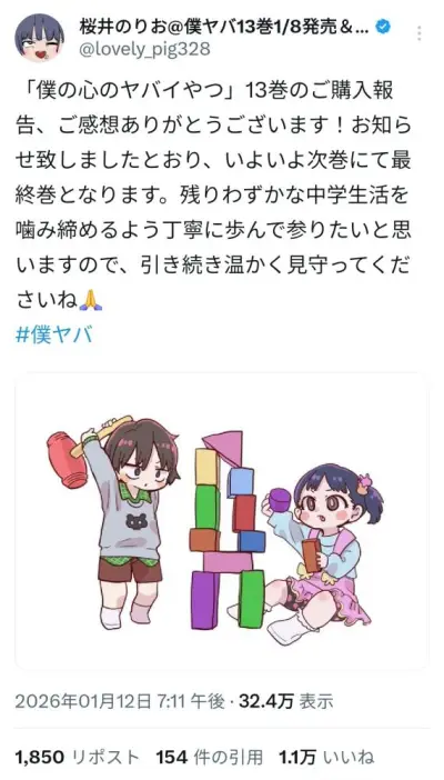 【画像】漫画「僕の心のヤバイやつ」次巻で最終巻、ついにセッ0ス解禁か