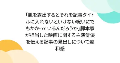 「肌を露出するとそれを記事タイトルに入れないといけない呪いにでもかかっているんだろうか」脚本家が担当した映画に関する主演俳優を伝える記事の見出しについて違和感