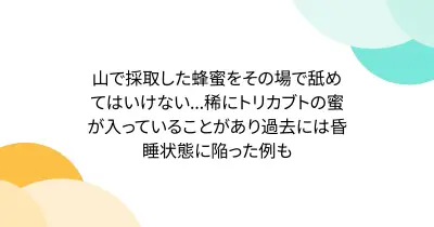 山で採取した蜂蜜をその場で舐めてはいけない...稀にトリカブトの蜜が入っていることがあり過去には昏睡状態に陥った例も