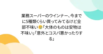 業務スーパーのウインナー、今までに5種類くらい買ってみてるけど全部不味い🥲「大体のものは安物は不味い」「意外とコスパ悪かったりする」