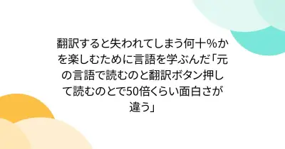 翻訳すると失われてしまう何十%かを楽しむために言語を学ぶんだ「元の言語で読むのと翻訳ボタン押して読むのとで50倍くらい面白さが違う」