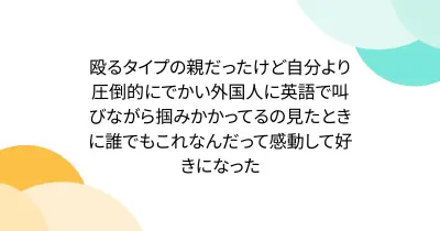 殴るタイプの親だったけど自分より圧倒的にでかい外国人に英語で叫びながら掴みかかってるの見たときに誰でもこれなんだって感動して好きになった