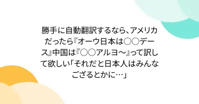 勝手に自動翻訳するなら、アメリカだったら『オーウ日本は○○デース』中国は『○○アルヨ~』って訳して欲しい「それだと日本人はみんなござるとかに…」