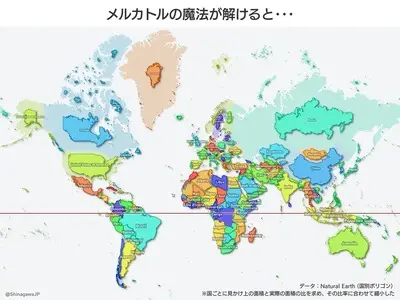 【画像】『メルカトル図法』とかいう認識誤認させるザコ地図wwwww