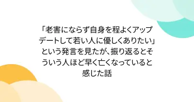 「老害にならず自身を程よくアップデートして若い人に優しくありたい」という発言を見たが、振り返るとそういう人ほど早く亡くなっていると感じた話