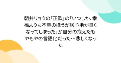 朝井リョウの「正欲」の「いつしか、幸福よりも不幸のほうが居心地が良くなってしまった」が自分の抱えたもやもやの言語化だった…悲しくなった