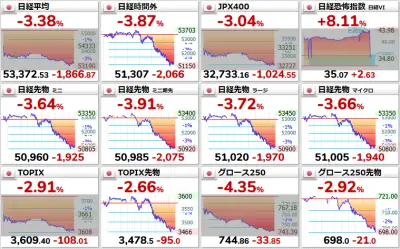 【阿鼻叫喚】日本株、夜間取引で1,970円の大暴落wwww 月曜日の日経平均、ガチで終わる模様