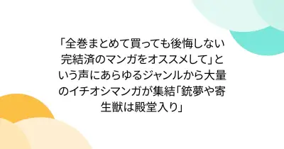 「全巻まとめて買っても後悔しない完結済のマンガをオススメして」という声にあらゆるジャンルから大量のイチオシマンガが集結「銃夢や寄生獣は殿堂入り」