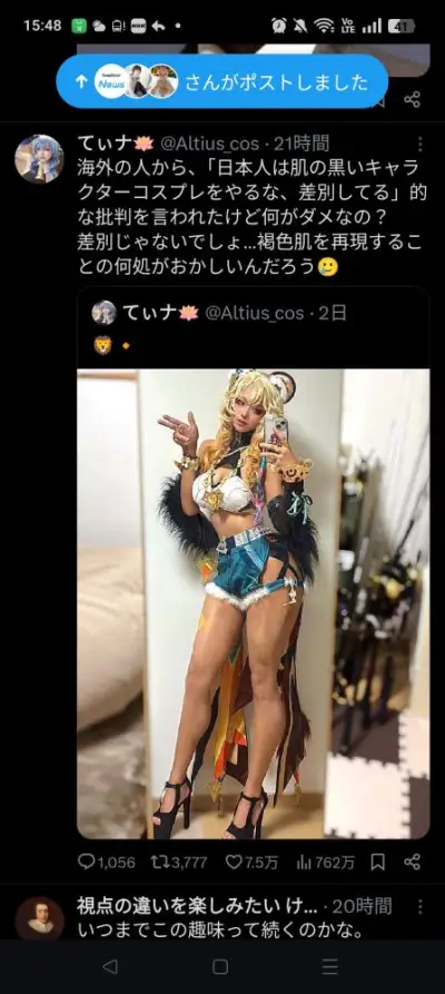 【悲報】コスプレイヤー達、少数派の黒人からの非難をあたかも多数派意見かのようにでっち上げていいね稼ぎをしてしまう