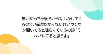 猫がめっちゃ後ろから話しかけてくるので、猫語わからないけどウンウン聞いてると喋らなくなるの謎「それバレてると思うよ」