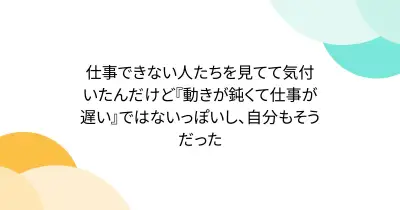 仕事できない人たちを見てて気付いたんだけど『動きが鈍くて仕事が遅い』ではないっぽいし、自分もそうだった