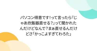 パソコン得意です!って言ったら『じゃあ炊飯器直せる?』って聞かれたんだけどなんで?まぁ直せるんだけどさ「かっこよすぎてわろた」