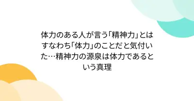 体力のある人が言う「精神力」とはすなわち「体力」のことだと気付いた…精神力の源泉は体力であるという真理