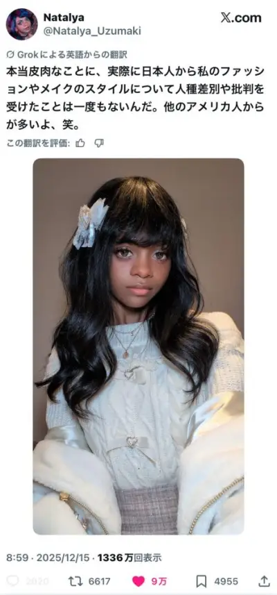 【画像】黒人の女の子「日本のファッションをしたら日本人からは批判されないのに、アメリカ人にめちゃくちゃ批判される!」→90万いいね
