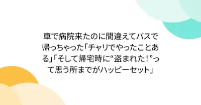 車で病院来たのに間違えてバスで帰っちゃった「チャリでやったことある」「そして帰宅時に“盗まれた!”って思う所までがハッピーセット」