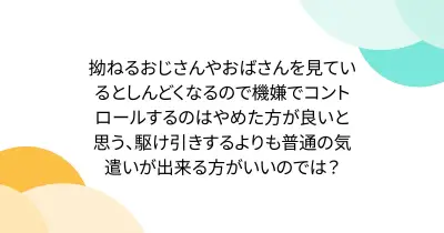 拗ねるおじさんやおばさんを見ているとしんどくなるので機嫌でコントロールするのはやめた方が良いと思う、駆け引きするよりも普通の気遣いが出来る方がいいのでは?