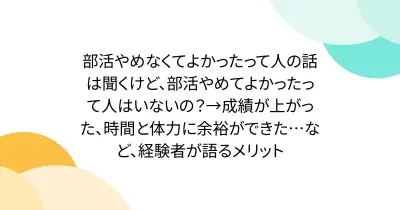 部活やめなくてよかったって人の話は聞くけど、部活やめてよかったって人はいないの?→成績が上がった、時間と体力に余裕ができた…など、経験者が語るメリット