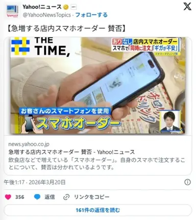 【飲食店】あり?なし?急増する「店内スマホオーダー」