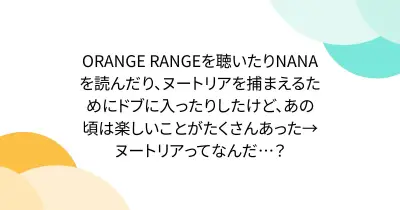 ORANGE RANGEを聴いたりNANAを読んだり、ヌートリアを捕まえるためにドブに入ったりしたけど、あの頃は楽しいことがたくさんあった→ヌートリアってなんだ…?
