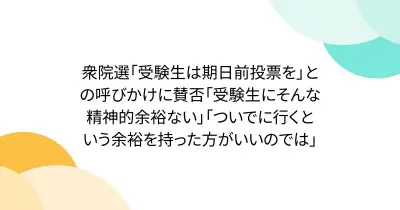 衆院選「受験生は期日前投票を」との呼びかけに賛否「受験生にそんな精神的余裕ない」「ついでに行くという余裕を持った方がいいのでは」